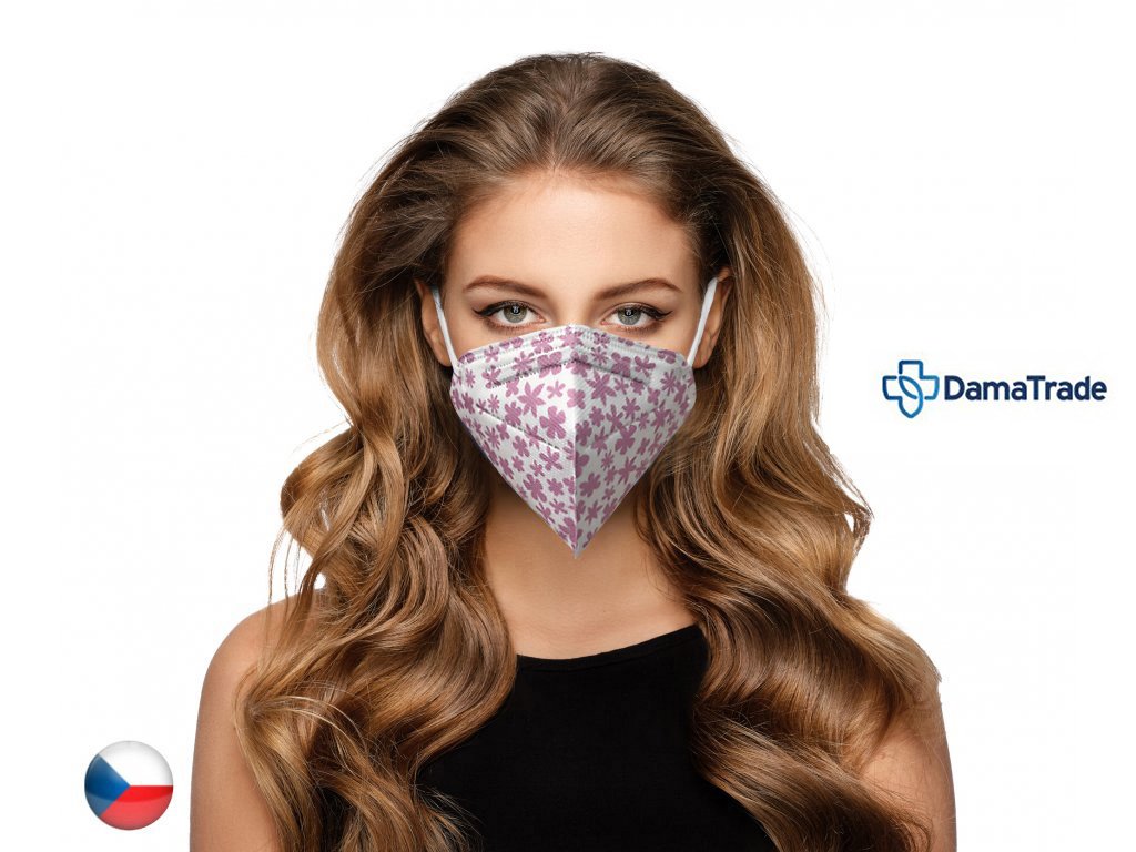 1x Český respirátor FFP2 - Růžové kytky