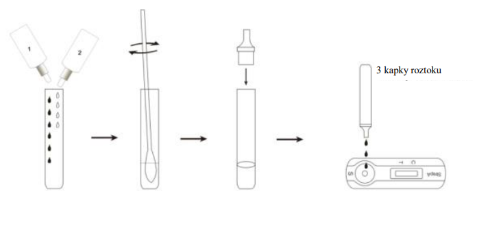 činidla 2 do zkumavky. Extrakční činidlo 2 je bezbarvé. Roztok promíchejte jemným kroužením