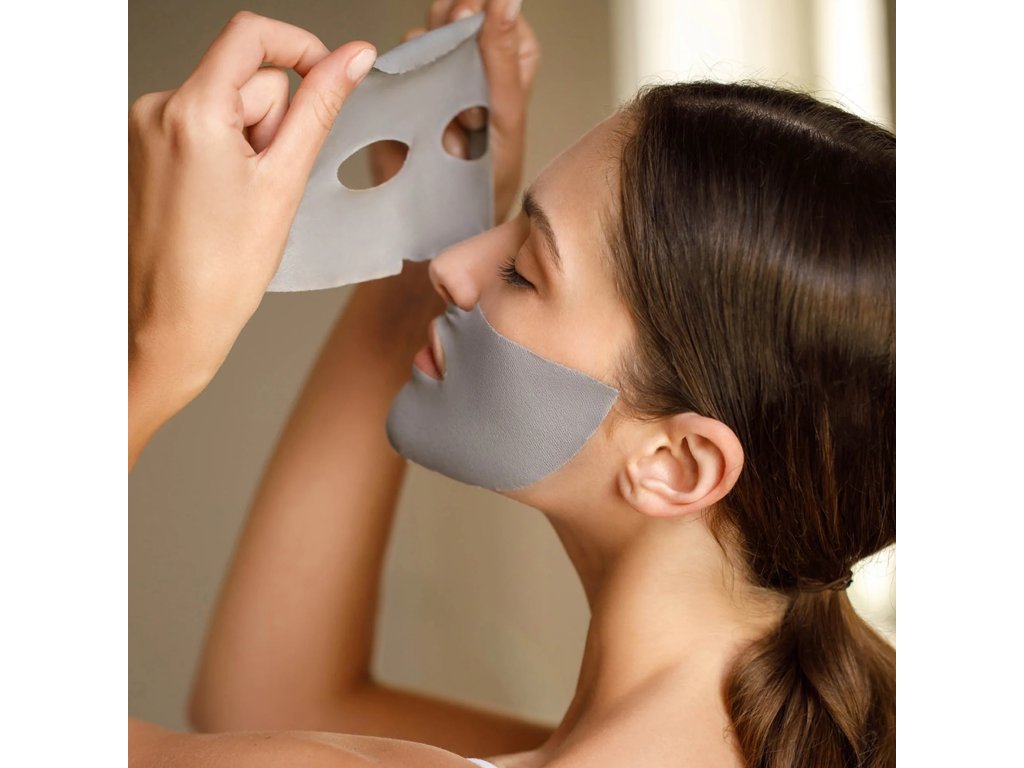 Masku vytáhněte z obalu a přiložte na vyčištěný obličej.