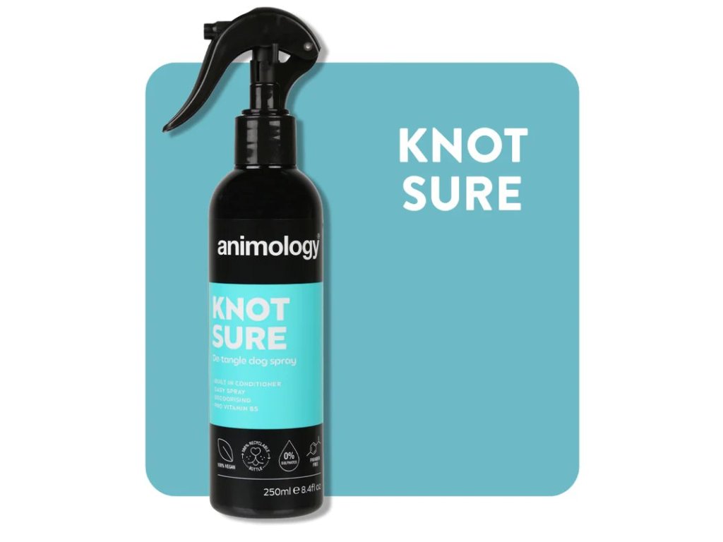 Sprej Animology Knot Sure na rozčesávání srsti Vám pomůže vyčesat i ty nejodolnější chuchvalce. Je obohacený o vitamíny a kondicionér, usnadňuje tak rozčesávání srsti psů a zároveň srst deodorizuje. Při pravidelném používání sprej pomáhá zabraňovat vytváření dalších chuchvalců v srsti.