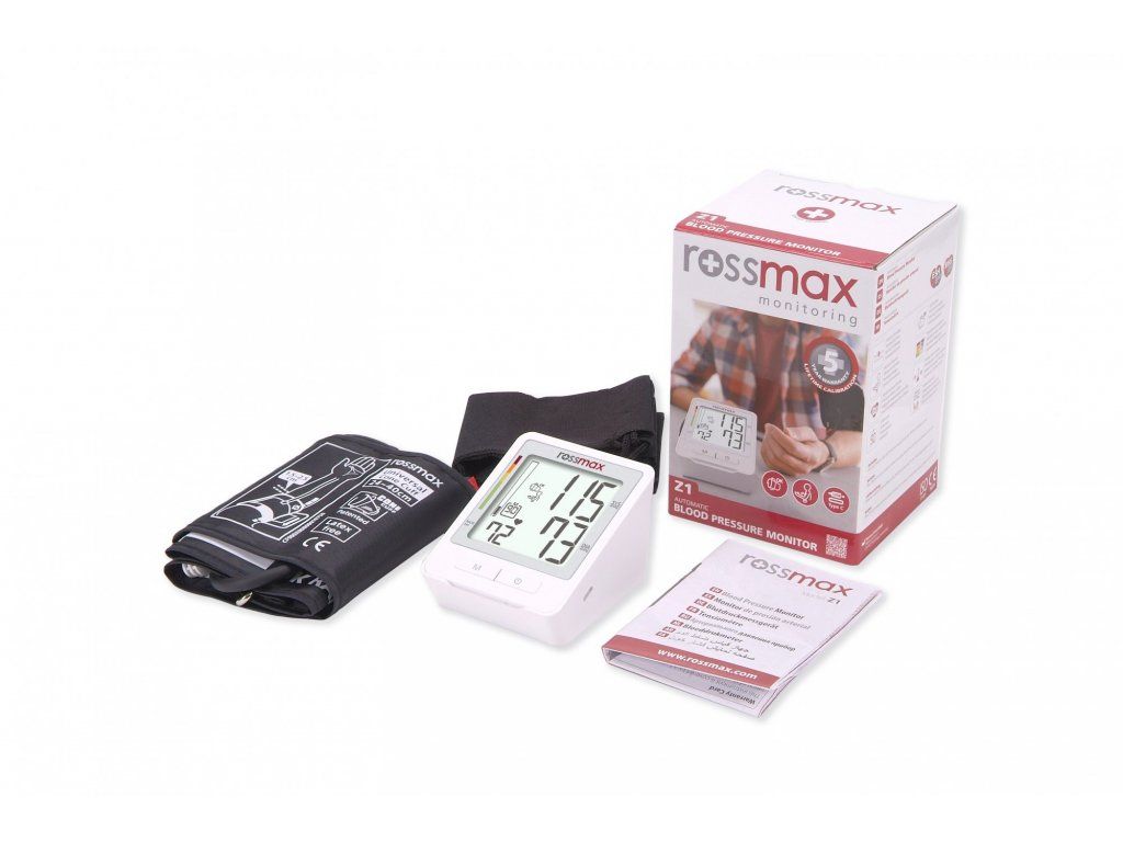 Tlakoměr Rossmax Z1 jednoduše změří tlak stisknutím jediného tlačítka. Výsledné hodnoty se zobrazí na velkém přehledném LCD displeji. Do paměti uchová posledních 90 naměřených hodnot a zobrazí průměr ze 3 posledních měření. Kromě krevního tlaku detekuje tlakoměr také srdeční aritmii a naměřený výsledek přiřadí do příslušné rizikové skupiny dle WHO.