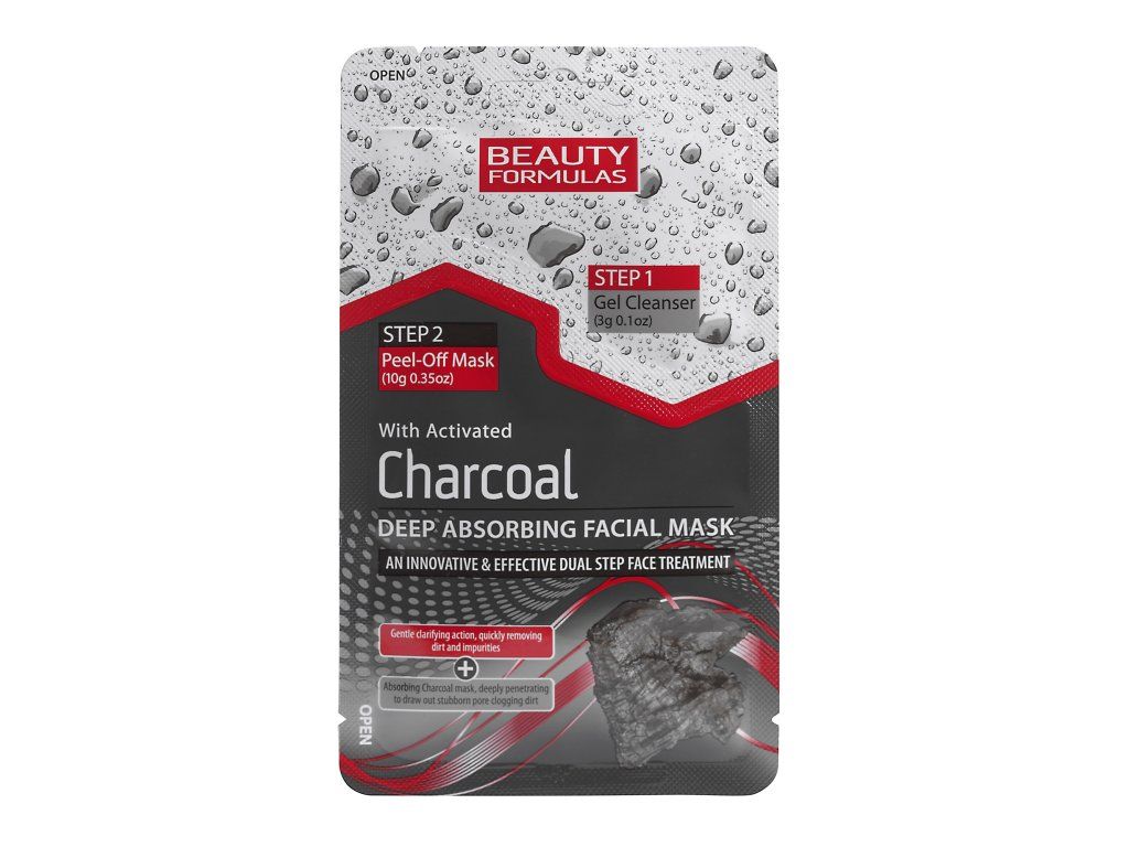 BEAUTY FORMULAS Čistící gel a slupovací maska na obličej s aktivním uhlím 2v1