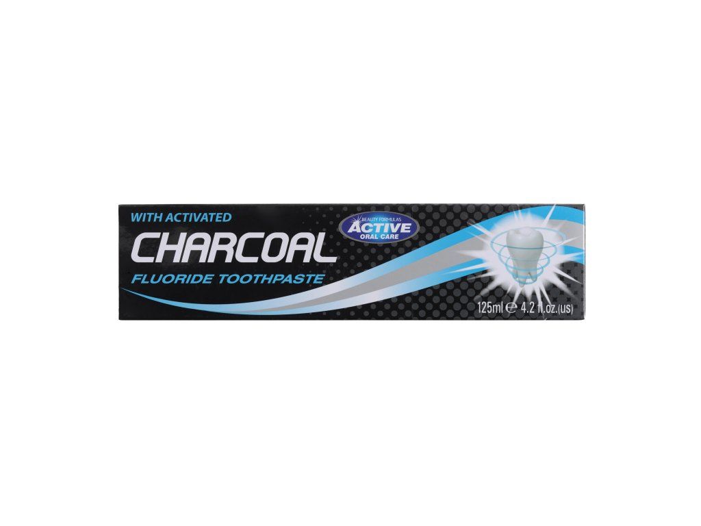 Fluoridová zubní pasta Beauty Formulas Charcoal Toothpaste s aktivním uhlím efektivně bělí zuby a čistí ústní dutinu.