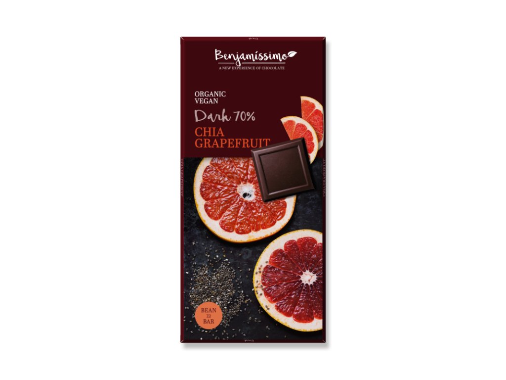 Veganská, bio tmavá čokoláda s chia semínky a grapefruit olejem