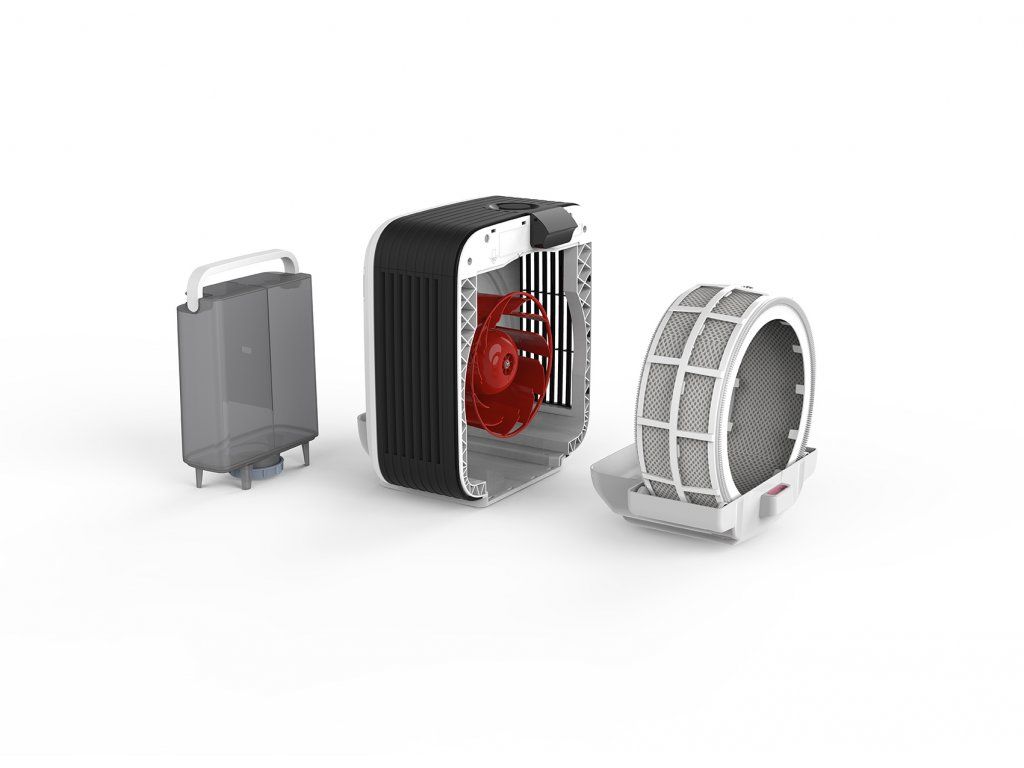 - Hybridní systém 3 v 1 – Možnost volby provozu jako zvlhčovač vzduchu, čistička vzduchu nebo hybrid (kombinace zvlhčování a čištění)