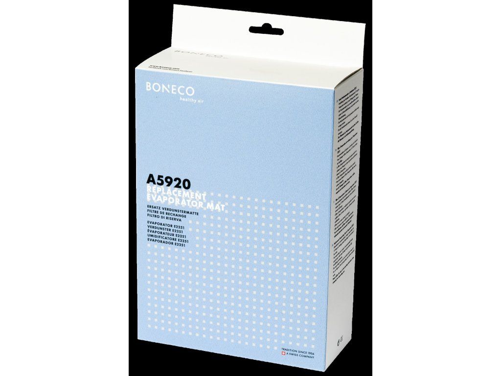Antibakteriální odpařovací rohož pro zvlhčovač vzduchu Boneco E2251. Rohož je vyrobena s ohledem na životní prostředí - výrobní materiálem je bavlna a celulóza. Rohož zlepšuje kvalitu vzduchu v místnosti, čistí ji od většich nečistot, jako jsou vlasy, prach, pyl nebo zvířecí srst. Prodlužuje také životnost zvlhčovače vzduchu. Pro optimální výkon použijte také antibakteriální ionizační tyčinku Boneco A7017. Maximální doba použití je 3 měsíce.