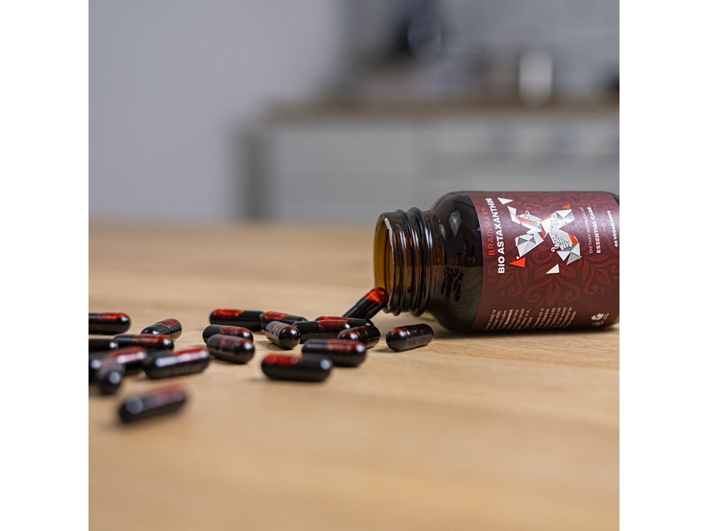 BrainMax Astaxanthin obsahuje v každé kapsli 8 mg astaxanthinu v té nejčistší formě a je extrahován CO2 extrakcí z řasy Haematococcus pluvialis, která je na množství astaxantihu nejbohatší. Jedná se o přírodní produkt, který jako takový má až 50 krát vyšší biologickou dostupnost než jeho syntetická forma. Jako jeden z mála antioxidantů prochází astaxanthin do všech tkání a orgánů včetně mozku. Molekuly Astaxanthinu jsou rozpustné ve vodě i v tucích a pronikají tak celou ochrannou lipidovou dvojvrstvou buňky.