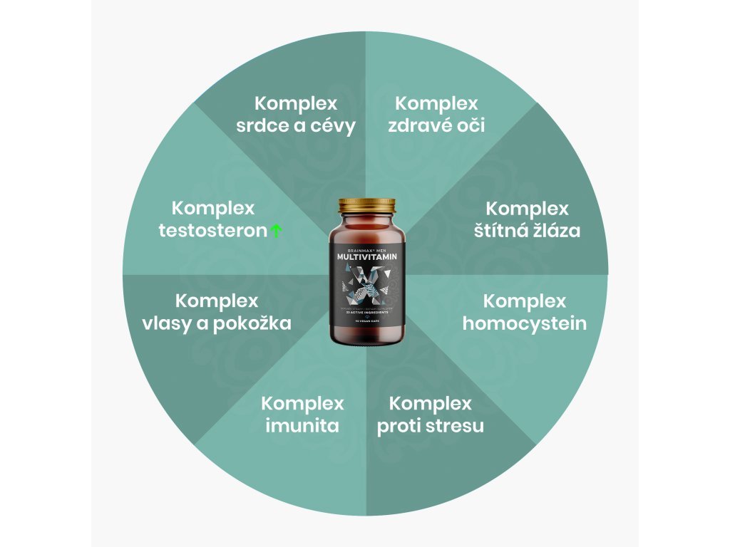 Podpora imunity, energie, vitality, trávení a hormonální optimalizace mužů. Normální hladina testosteronu.