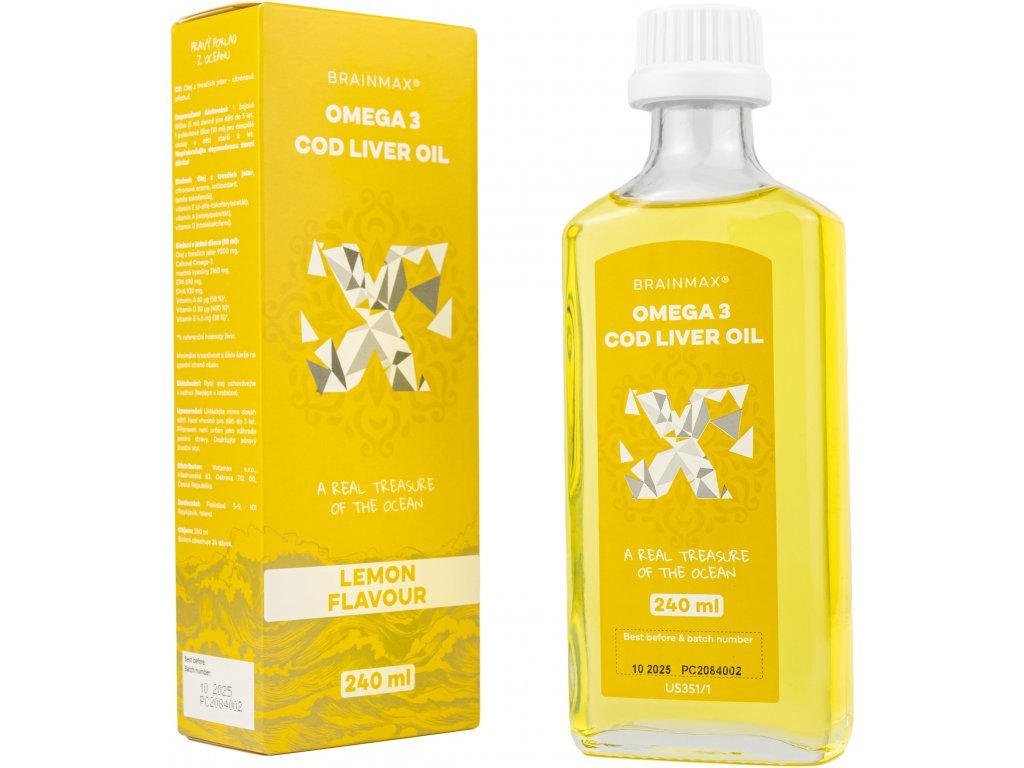 BrainMax - Omega 3, Olej z tresčích jater, citrón, 240 ml