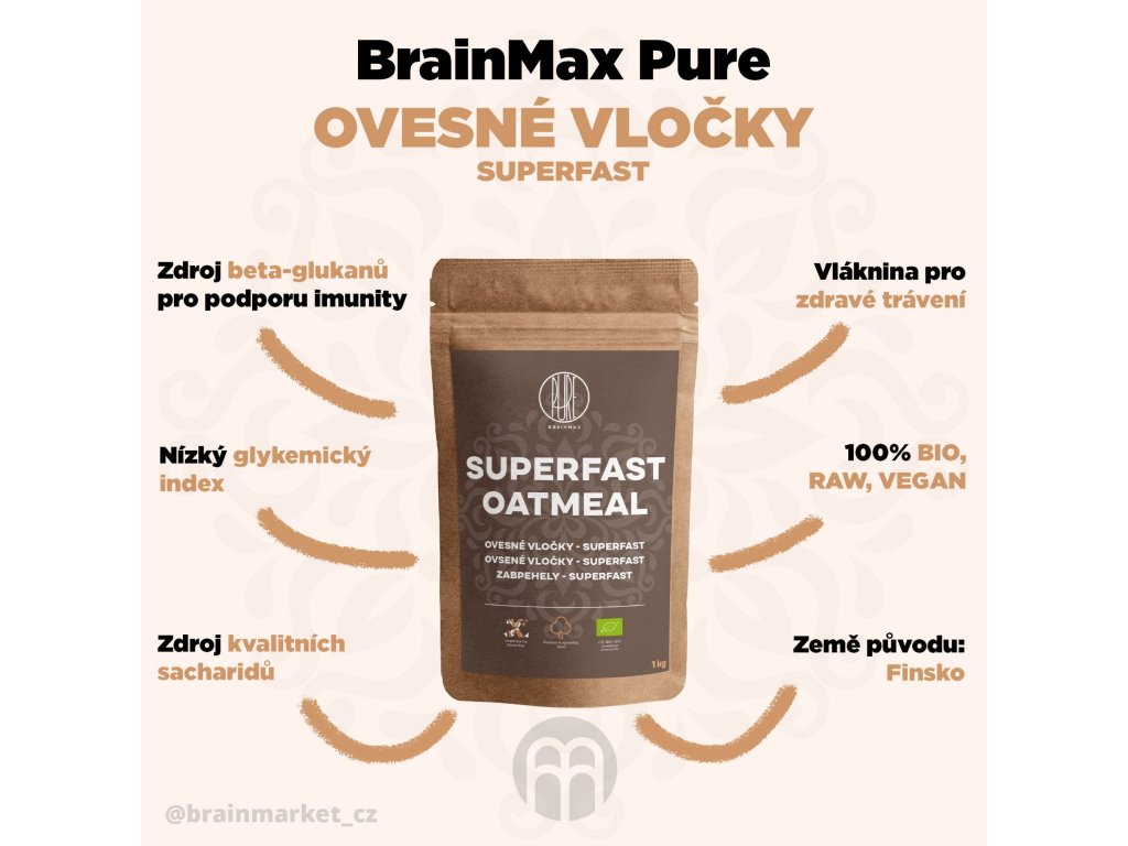 BrainMax Pure® - Superfast Ovesné Vločky BIO, 1kg