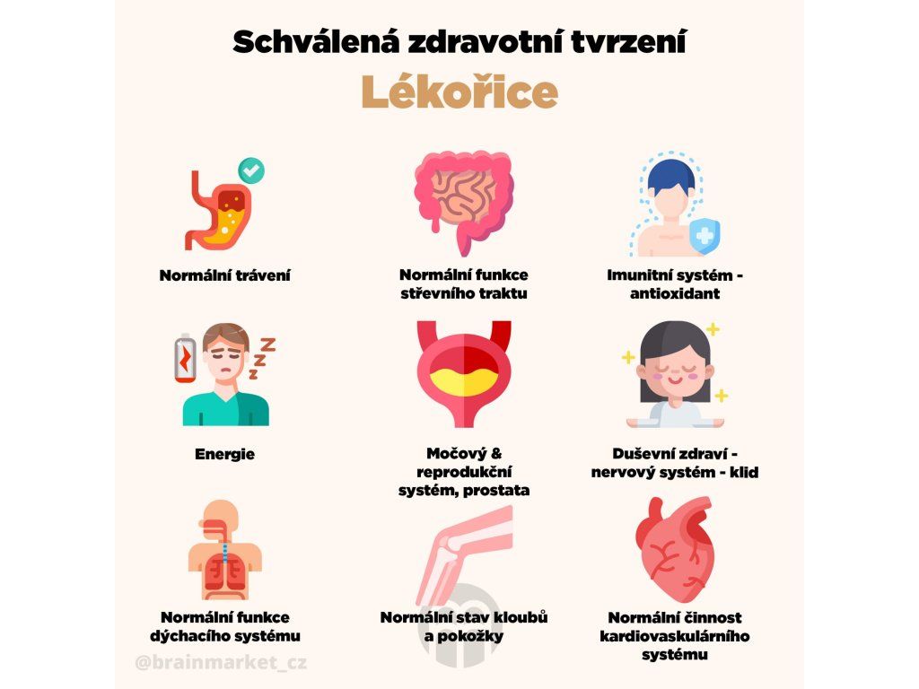 Po tisíce let má lékořice svou pověst založenou na svých uklidňujících vlastnostech. Její blahodárné účinky však sahají ještě dál. Pomáhá zklidnit podrážděný žaludek, podporuje trávení a funkce celého trávicího systému. Lékořice obsahuje antioxidanty, což jsou sloučeniny, které pomáhají tělo chránit před oxidativním stresem a tím brání poškození našich buněk. Díky tomu lékořice podporuje imunitní systém. Má přímý vliv na kardiovaskulární systém a jako významný adaptogen podporuje nervový systém a navozuje pocity klidu. Hodí se tedy pro osoby potýkající se stresem, ale také pro ty, kteří potřebuji doplnit energii během dne.