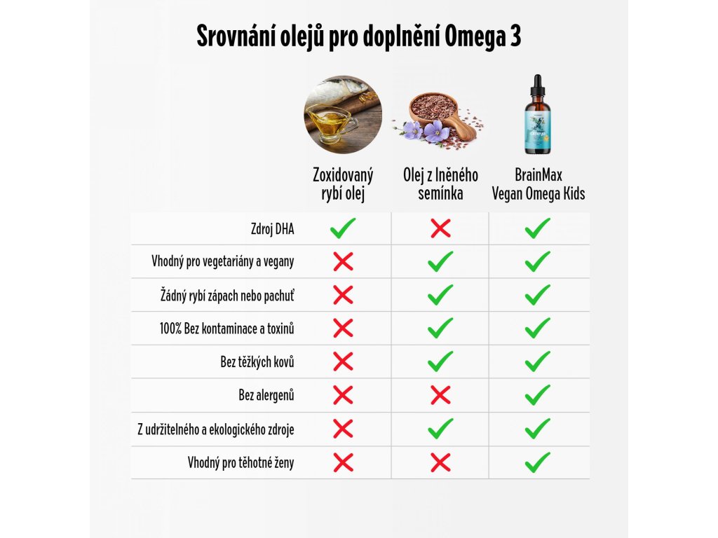 Pokud pro své dítě hledáte doplněk stravy, omega-3 mastné kyseliny jsou klíčové. BrainMax Vegan Omega KIDS obsahuje vše potřebné pro zdravý vývoj dětí. Na rozdíl od verze pro dospělé má dětská verze méně olivového oleje, což dává oleji jemnější chuť. Díky tomu je tento olej pro děti příjemný na užívání a pipetové dávkování usnadňuje podávání.