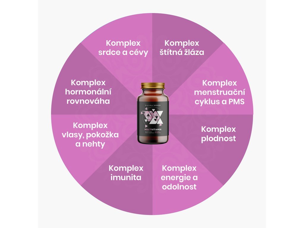 Díky pečlivému výběru vitamínů, minerálů, antioxidantů a standardizovaných extraktů z bylin je tento multivitamínový komplex zaměřen jak na hormonální rovnováhu, plodnost, optimalizaci ženského cyklu, odolnost proti stresu, správnou funkci imunitního systému a štítné žlázy, zdraví srdce, očí, tak na pevné nehty, krásné vlasy a pružnou pokožku. Všechny vitamíny a minerály v komplexu jsou zastoupeny ve snadno vstřebatelných aktivních formách, čímž je zajištěn pozitivní efekt na organismus. Je určen všem ženám v každém věku.