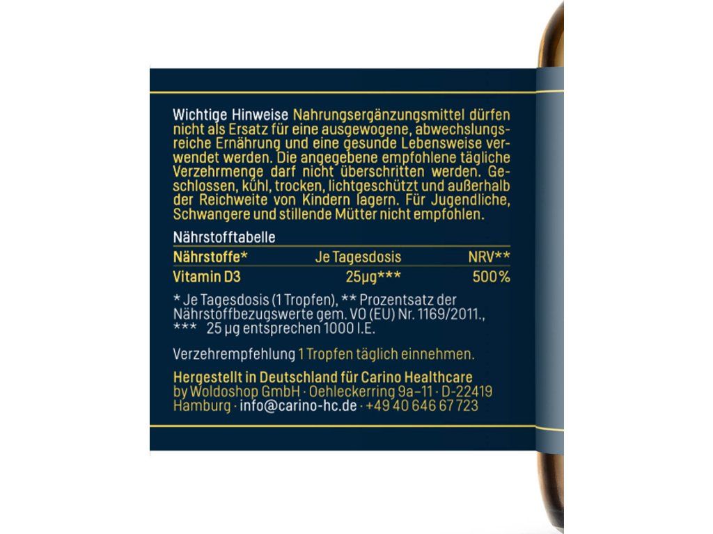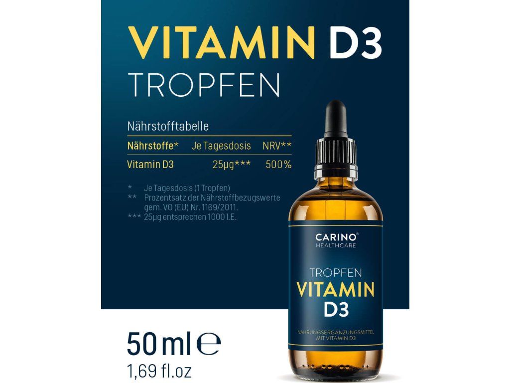 Carino vitamín D3 byl vyroben a farmaceuticky testován v Německu. Je vhodný pro vegetariány a obsahuje pouze účinné látky s ověřeným původem.