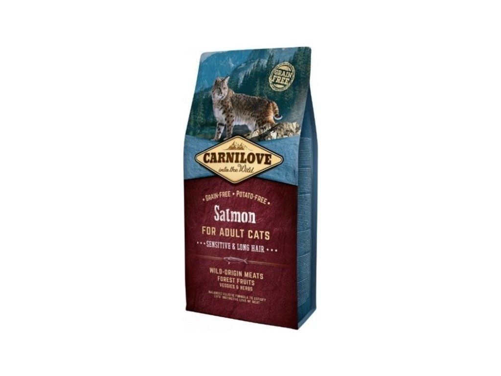 Carnilove CAT krmivo bez obilovin pro dlouhosrsté kočky s citlivým zažíváním s lososem, 6 kg