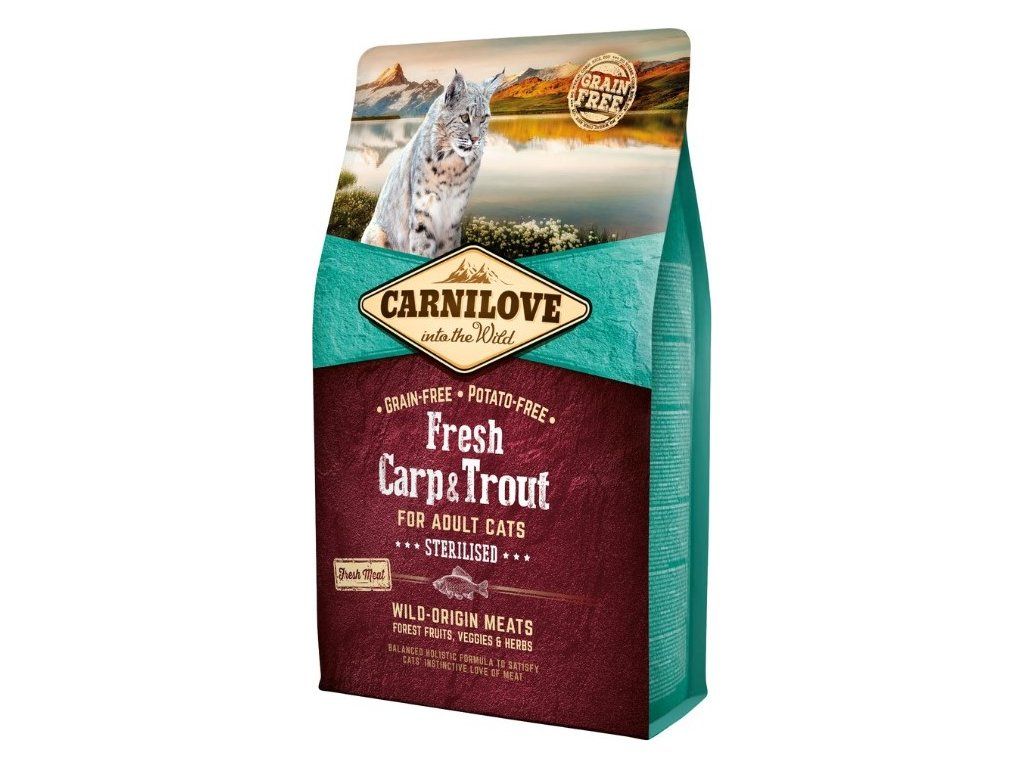 Carnilove Kapr & Pstruh je superprémiové, holistické kvalitní krmivo bez obilovin a brambor s čerstvým masem pro dospělé kastrované kočky. Krmivo bylo navrženo s respektem k přirozené skladbě potravy koček a poskytuje vaší kočičí společnici vyváženou stravu bohatou na čerstvé maso v kombinaci s různými druhy zeleniny, lesního ovoce a bylin.
