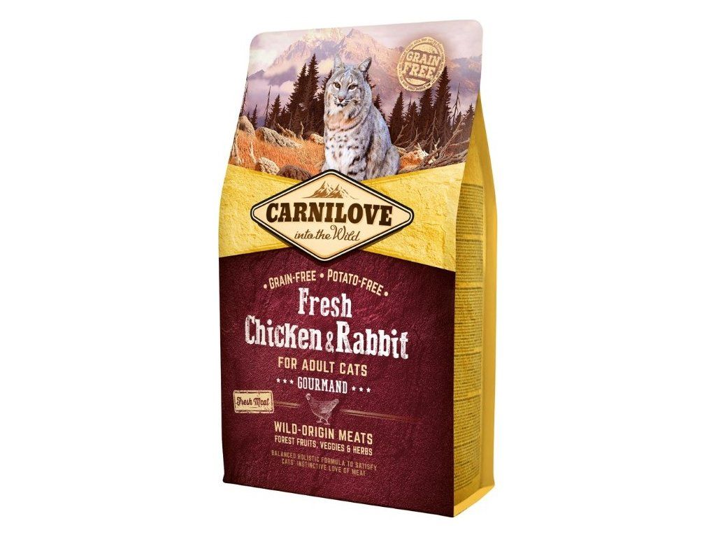 Carnilove Fresh Kuře & Králík je superprémiové, holistické kvalitní krmivo bez obilovin a brambor s čerstvým masem pro dospělé kočky. Krmivo bylo navrženo s respektem k přirozené skladbě potravy koček a poskytuje vaší kočičí společnici vyváženou stravu bohatou na čerstvé maso v kombinaci s různými druhy zeleniny, lesního ovoce a bylin.