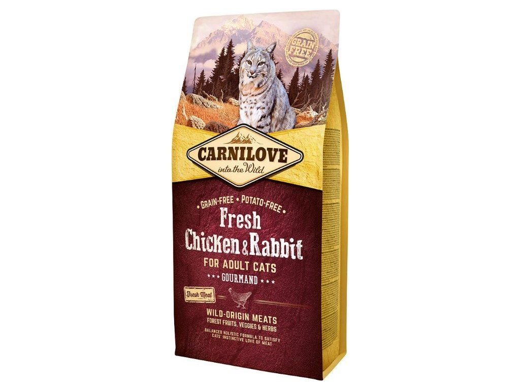 Carnilove Fresh Kuře & Králík je superprémiové, holistické kvalitní krmivo bez obilovin a brambor s čerstvým masem pro dospělé kočky. Krmivo bylo navrženo s respektem k přirozené skladbě potravy koček a poskytuje vaší kočičí společnici vyváženou stravu bohatou na čerstvé maso v kombinaci s různými druhy zeleniny, lesního ovoce a bylin.