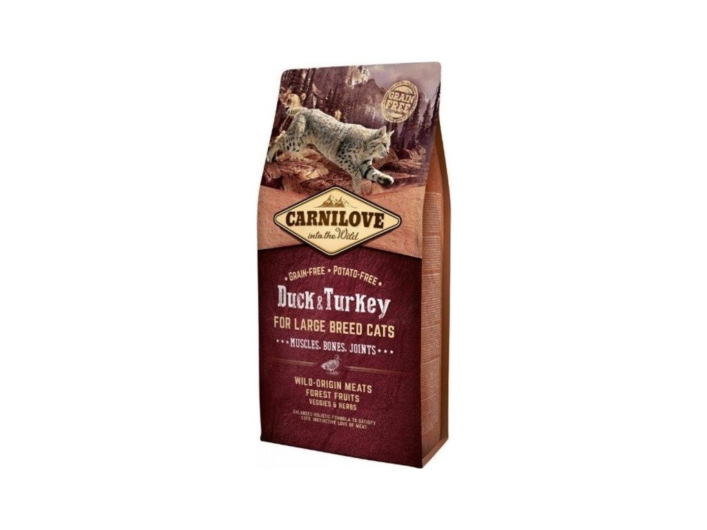 Carnilove CAT krmivo bez obilovin pro velké kočky s kachnou a krocanem, 6 kg