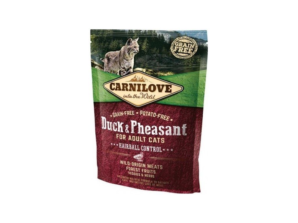 Carnilove CAT krmivo pro snazší vykašlávání chlupů u dospělých koček s kachnou a bažantem, 400 g