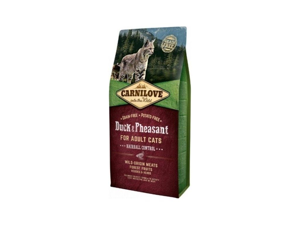 Carnilove CAT krmivo pro snazší vykašlávání chlupů u dospělých koček s kachnou a bažantem, 6 kg