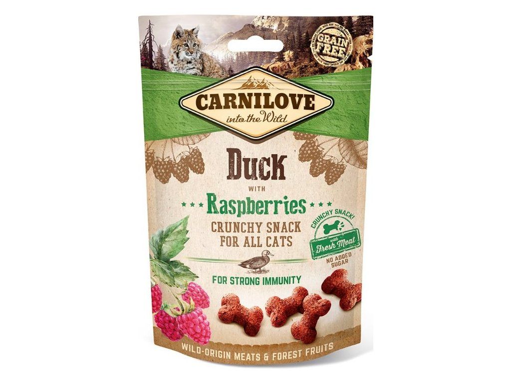 Carnilove Cat křupavé pamlsky bez obilovin pro kočky s kachnou a malinami, 50 g