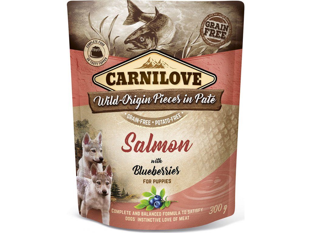 Carnilove Dog Kapsička pro štěňata paté losos, vnitřnosti a borůvky, 300 g