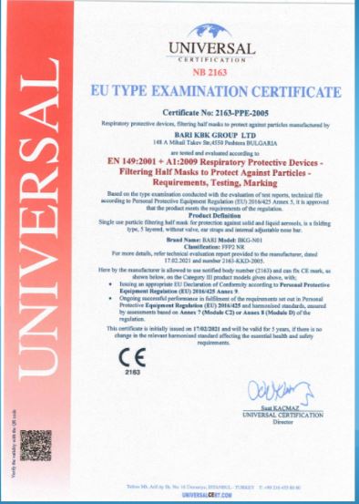 Respirátor FFP2 s CE a EN certif. (vyrobeno v EU) , Bari