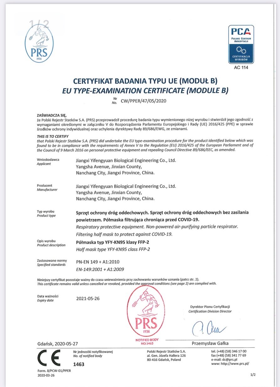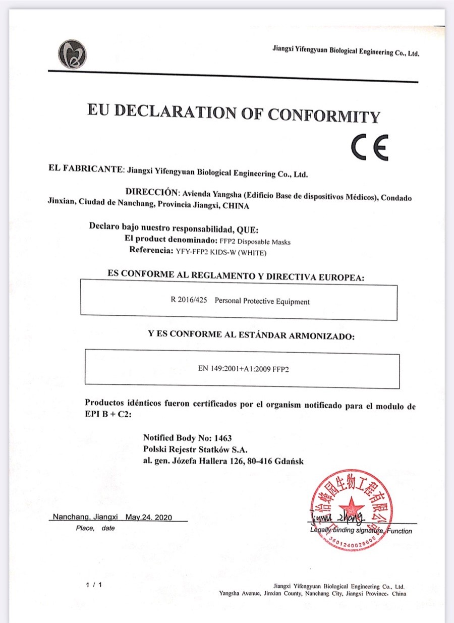 Dětský respirátor FFP2, Jiangxi Yifengyuan Biological Engineering Co.