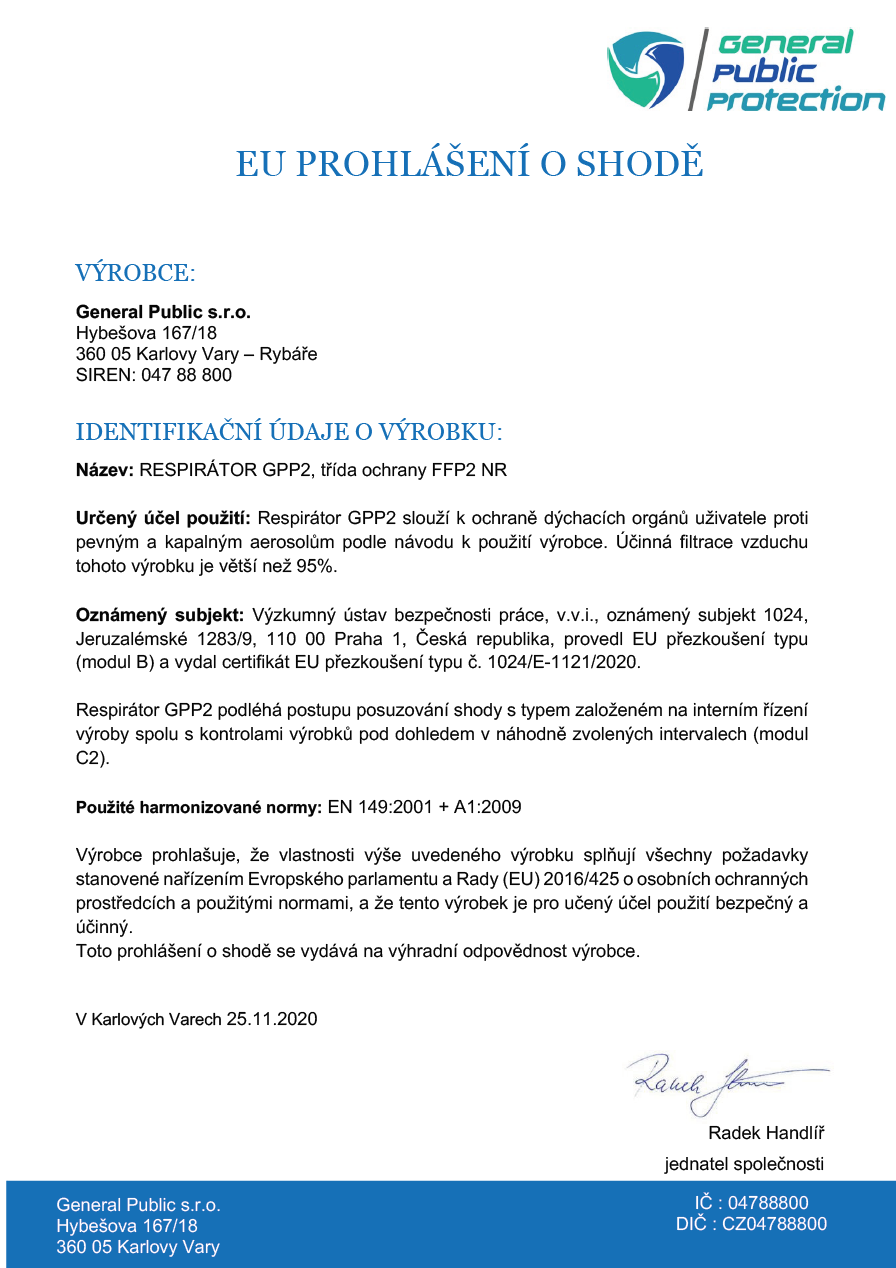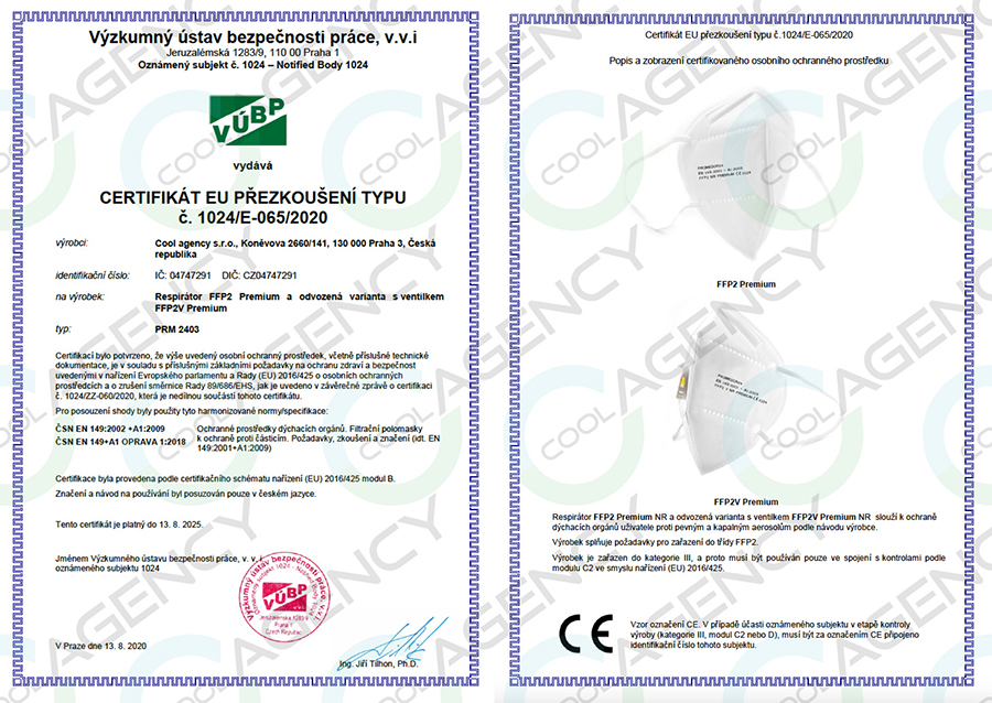 ČESKÝ Respirátor třídy FFP3 s CE a EN certif., General Public