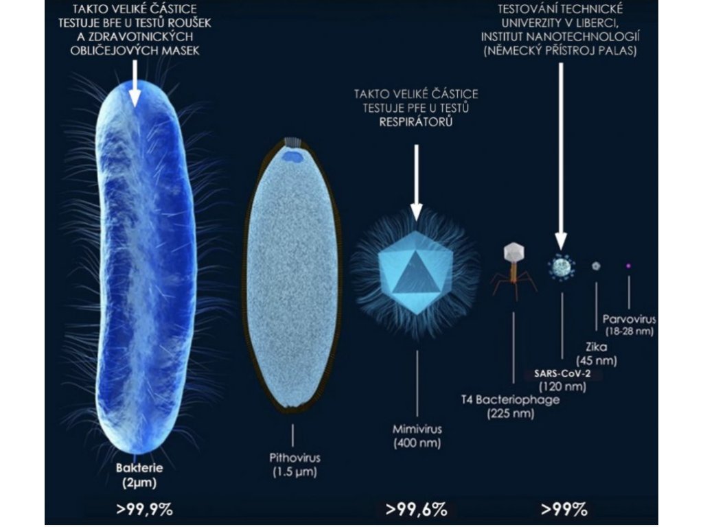 Stupeň filtrace: viry> 98%, bakterie> 99%