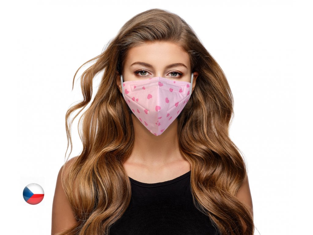 Český NanoRespirátor FFP2 - Růžová srdíčka (č.15)