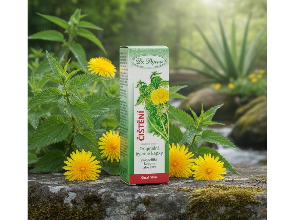 Originální bylinné kapky Dr. Popova Čištění v sobě promyšleně spojují 8 bylin s čisticími účinky na náš organismus.
