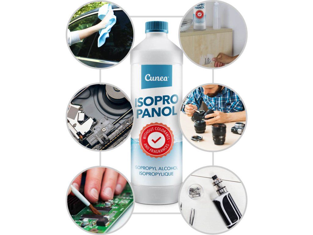 Bez přísad: IPA se skládá ze 99,9% Isopropylalkohol a neobsahuje přísady barvicích činidel a vonných látek. Tím se rychle vypařuje beze zbytků, nezanechává žádné nepříjemné pachy. Použitelný také pro elektronické přístroje jako procesory, CCD senzory, k číštění fotoválců, mechaniky tiskáren, CD disků, optiky objektivů, brýlí, čoček laserů, vhodné k odstranění skvrn od inkoustu. Lze použít také pro inkoustové kazety Inkoustové tiskárny. Izopropanol se rychle odpařuje a na čištěném materiálu po sobě nezanechává žádné skvrny.