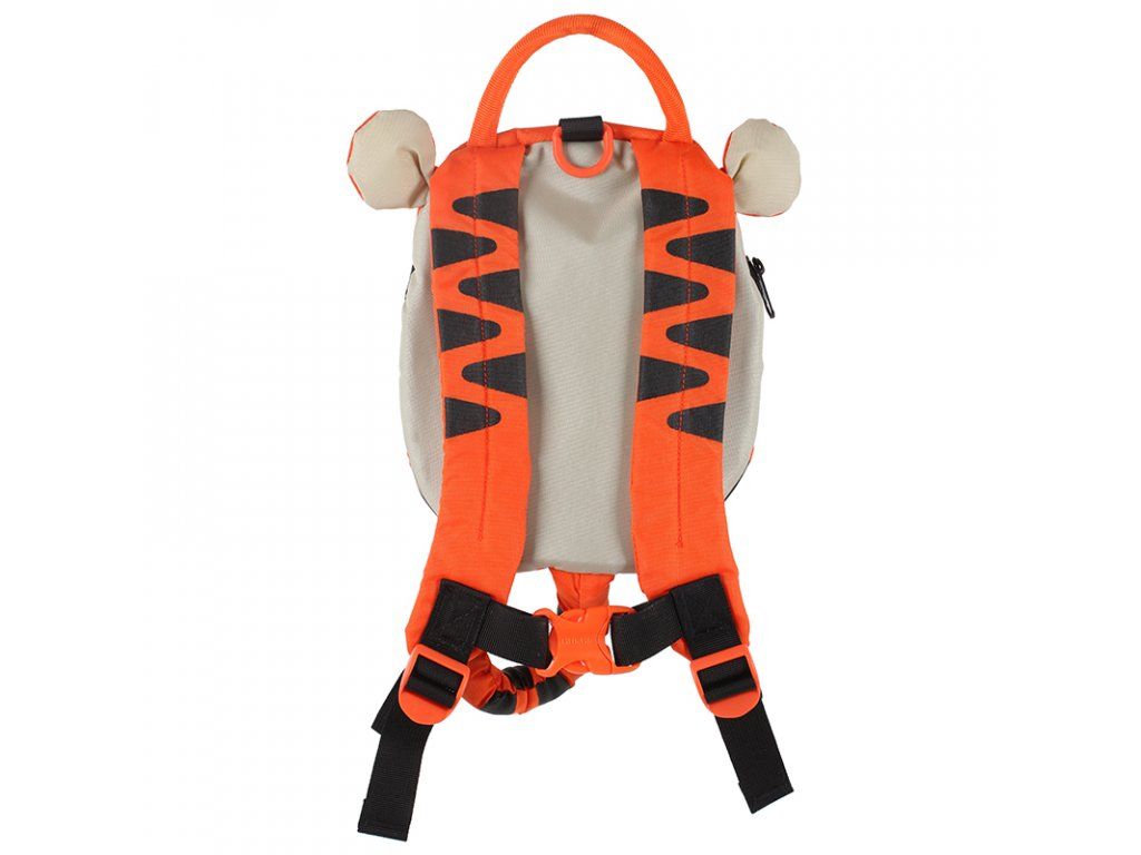 Dětský 2l batůžek s motivem tygra je určený pro děti od 1 až do 3 let. Hlavní komora nabízí prostor o objemu 2 litry, což bohatě stačí pro oblíbenou hračku nebo jiné drobnosti. Důležitou součástí je horní pevné madlo a bezpečnostní vodítko, které zajišťuje rodičům kontrolu dětí v rušných prostorách, ulicích, parku, a zároveň jim umožňuje svobodu, kterou potřebují k vybudování své vlastní důvěry. Batůžek oceníte zejména při prvních pokusech dítěte na malé motorce nebo odrážedle, kdy svou ratolest můžete přidržovat nebo bezpečně zachytit v případě pádu. K tomu aby dítě při zachycení za horní madlo nebo vodítko z batohu nevypadlo, slouží přední hrudní popruh se sponou.