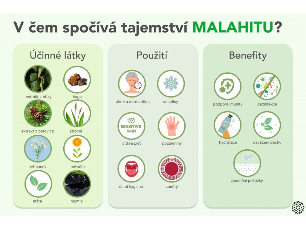 Malachit – bezpečné a účinné řešení pro zdravou pokožku, ústní a intimní hygienu.