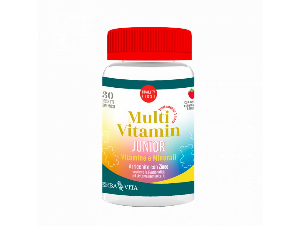 MultiVitamin Junior, obsahuje specifický vyvážený vzorec určený pro děti, poskytuje správnou směs biologicky dostupných vitamínů obohacených o zinek, který je užitečný pro funkčnost imunitního systému. Oslazené stévií, v praktickém a zábavném formátu žvýkaček gumových medvídků.