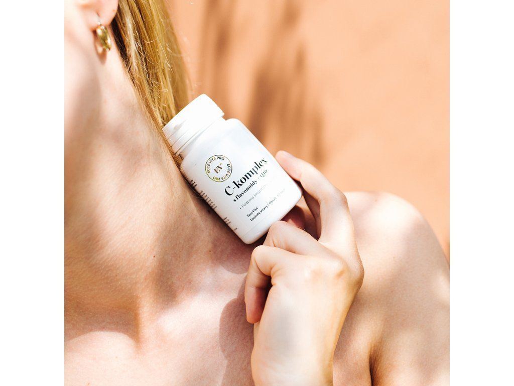 Ecce Vita C-komplex s flavonoidy obsahuje vitamín C obohacený o přírodní rostlinné extrakty standardizované na obsah vitamínu C, přírodní citrusové bioflavonoidy a koenzym Q10.