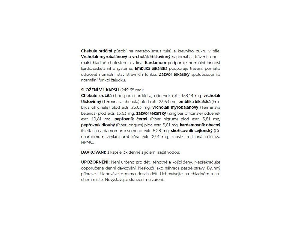 Užívejte jednu kapsli třikrát denně společně s jídlem. Není vhodné pro děti, těhotné a kojící ženy. Vhodné i pro vegany. Obsah: 60 kapslí