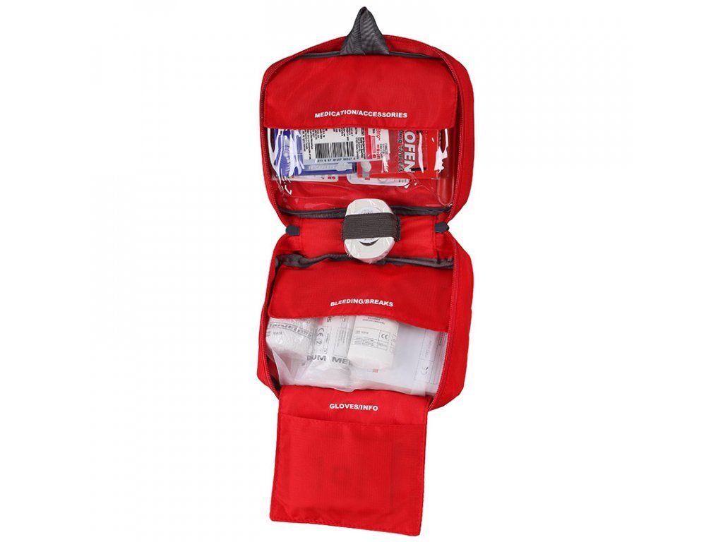 Velmi dobře vybavený set první pomoci, který vám umožní vypořádat se s většinou běžných zranění. Díky systému QuickFind najdete vše hned, bez přehrabování celé lékárny. Quick Find System byl vypracován na základě spolupráce se světově uznávanými týmy záchranářů a horské služby. Kompletně rozkládací systém poskytuje maximální orientaci a přehled v uspořádaných sekcích lékárny. Po jejím rozbalení tak máte k dispozici oddělené sekce s náplastmi, krytím, obvazy, atd. Rozbalená lékárnička se dá navíc snadno zavěsit pomocí vnitřního poutka. Doporučujeme lékárničku dovybavit o kartu na klíšťata a ALU fólii.