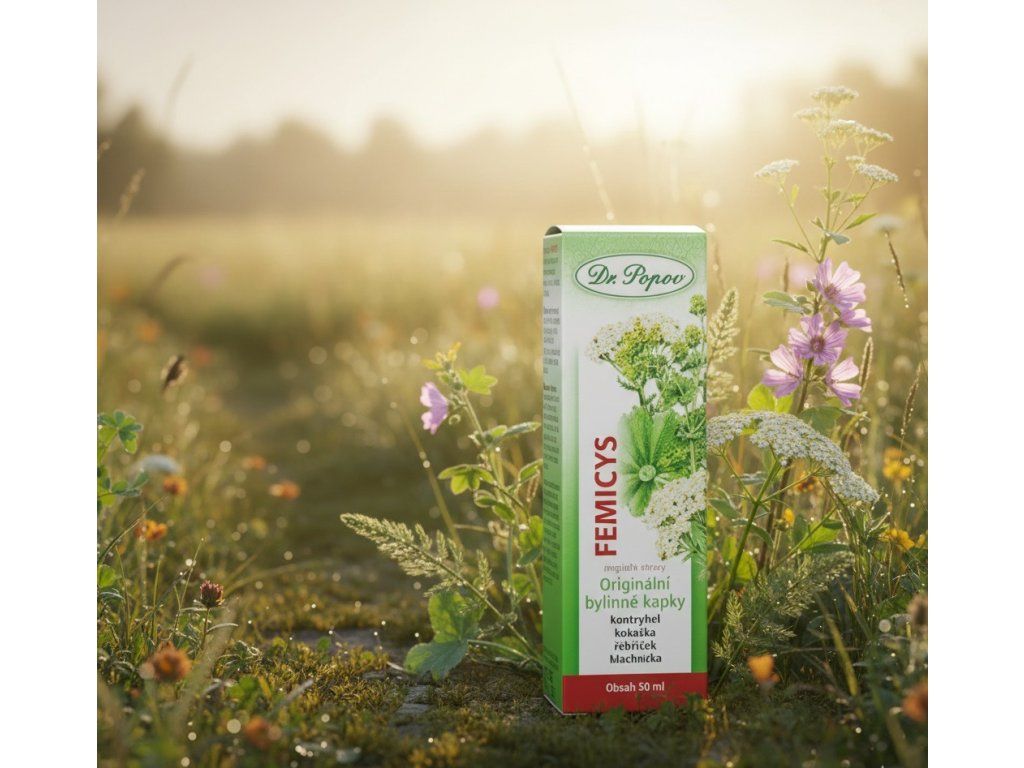 Originální bylinné kapky Dr. Popova Femicys v sobě spojují sílu 4 bylin určených pro zdravé ženské pohlavní orgány.