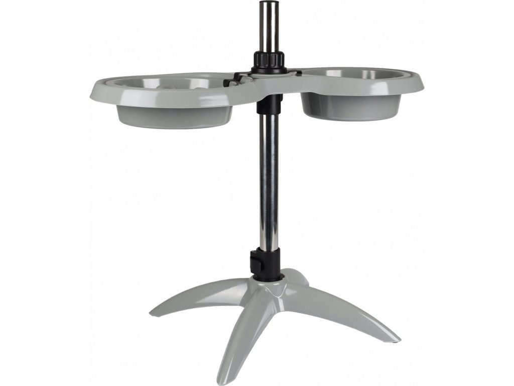 S praktickým stojanem se dvěma miskami SUVI budete mít jídlo a vodu pro svého psa vždy na jednom místě. Díky gumovým nožkám je stojan protiskluzový. Misky jsou nastavitelné až do výšky 54 cm a uchytí se pomocí rychlé svorky. Misky lze mýt v myčce.
