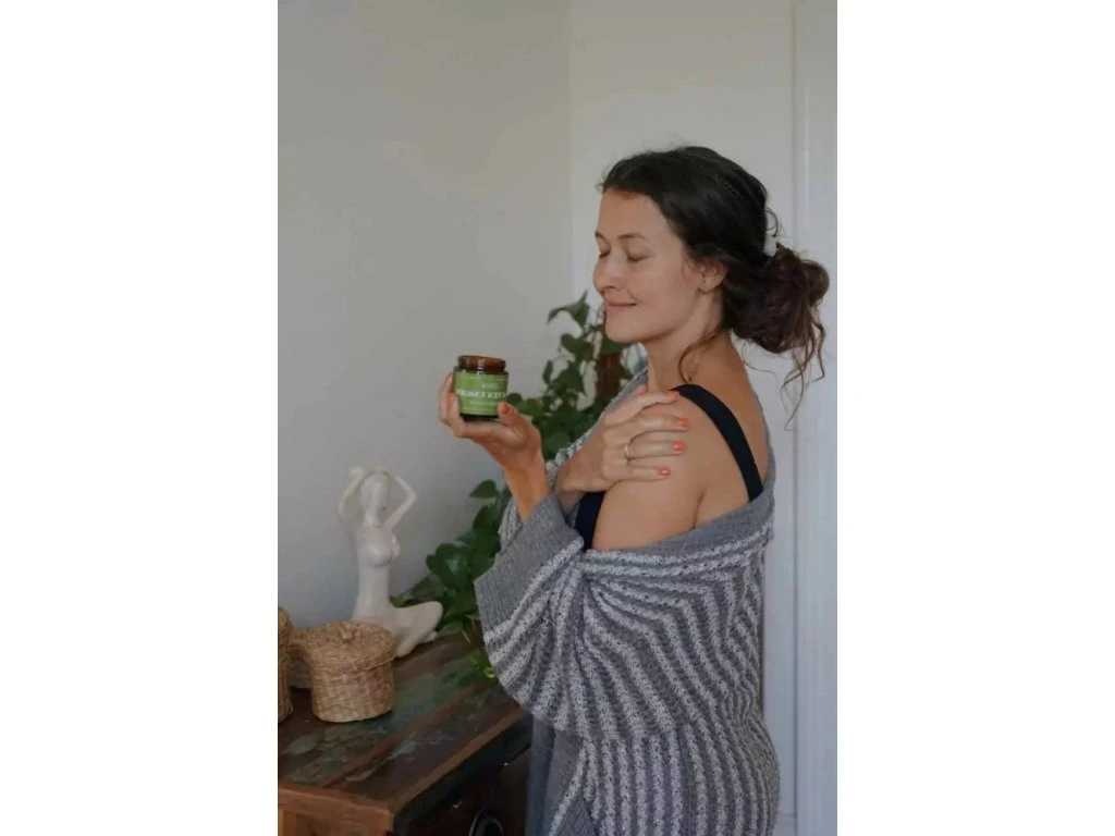 Butyrospermum parkii butter, Mangifera indica seed butter, Theobroma grandiflorum seed butter, Caprylic capric triglyceride, Prunus amygdalus dulcis seed oil, Prunus armeniaca kernel oil, Avena sativa kernel extract, Tocopherol, Ubiquinone, Citrus bergamia oil, Pogostemon cablin oil, *limonene, *linalool, *citral, * eugenol