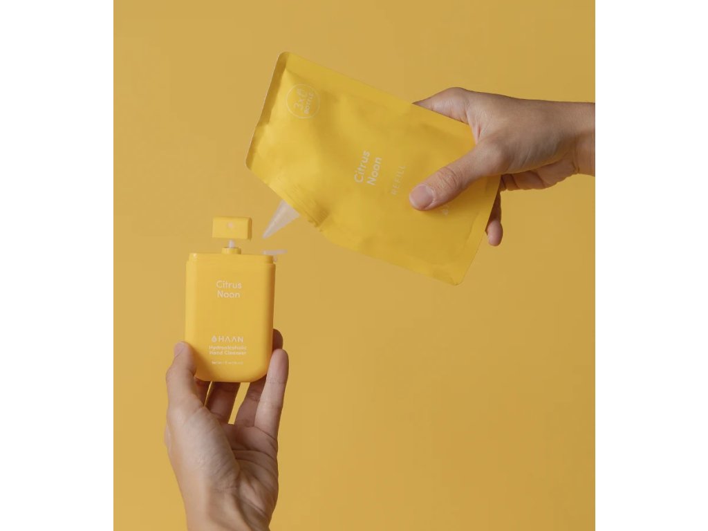 HAAN Citrus Noon je inovativní antibakteriální sprej na ruce, který ničí 99,9 % bakterií a virů bez použití vody. Díky vysokému obsahu aloe vera ruce hydratuje a vyživuje, aniž by zanechával lepivý pocit. Sprej má svěží vůni inspirovanou citronem a letním polednem, připomínající zářivé sluneční odpoledne.