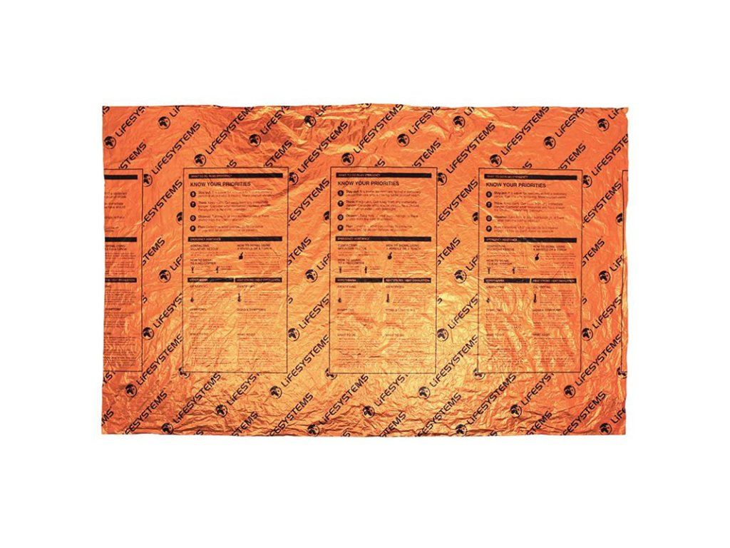 Heatshield Blanket Double je nouzová, odolná a skladná fólie pro 2 osoby, která pomůže udržet tělesnou teplotu v případě úrazu nebo při rychlém zhoršení počasí. Je vyrobena z pokoveného odolného polyethylenu, který odráží zpátky 90% vyzařovaného tělesného tepla. Fólie je nepromokavá, větruodolná a odráží radarové vlny. Díky své pevnosti je možné ji použít opakovaně.