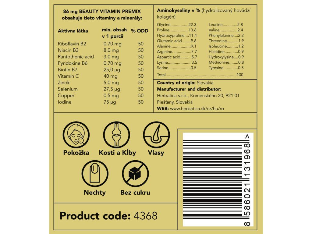 BEAUTY VITAMIN PREMIX obsahuje: