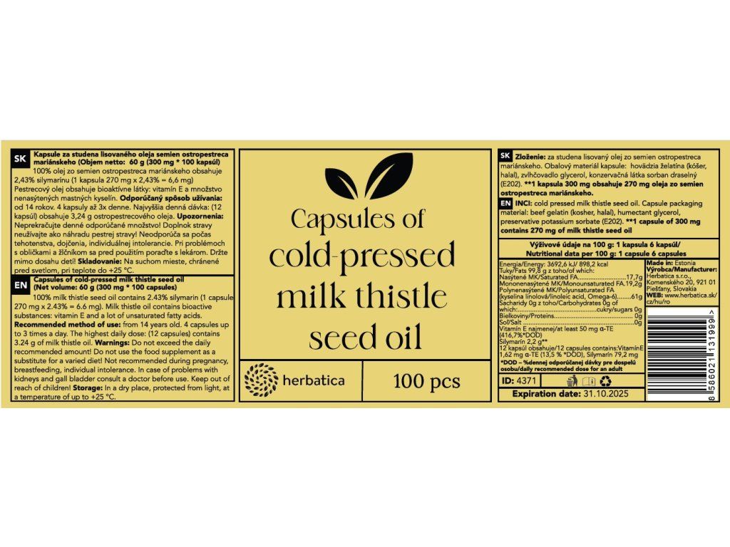 Herbatica Olej ze semen ostropestřce mariánského v kapslích, 100 kapslí