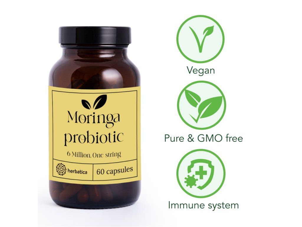 Herbatica Probiotika z moringy 6 milionů, jeden kmen, 60 kapslí