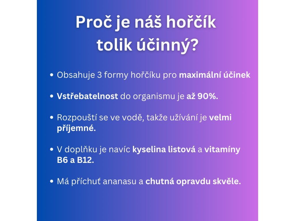 | Forma hořčíku: | Magnesium Citrate, Magnesium Bisglycinate, Magnesium Malate |