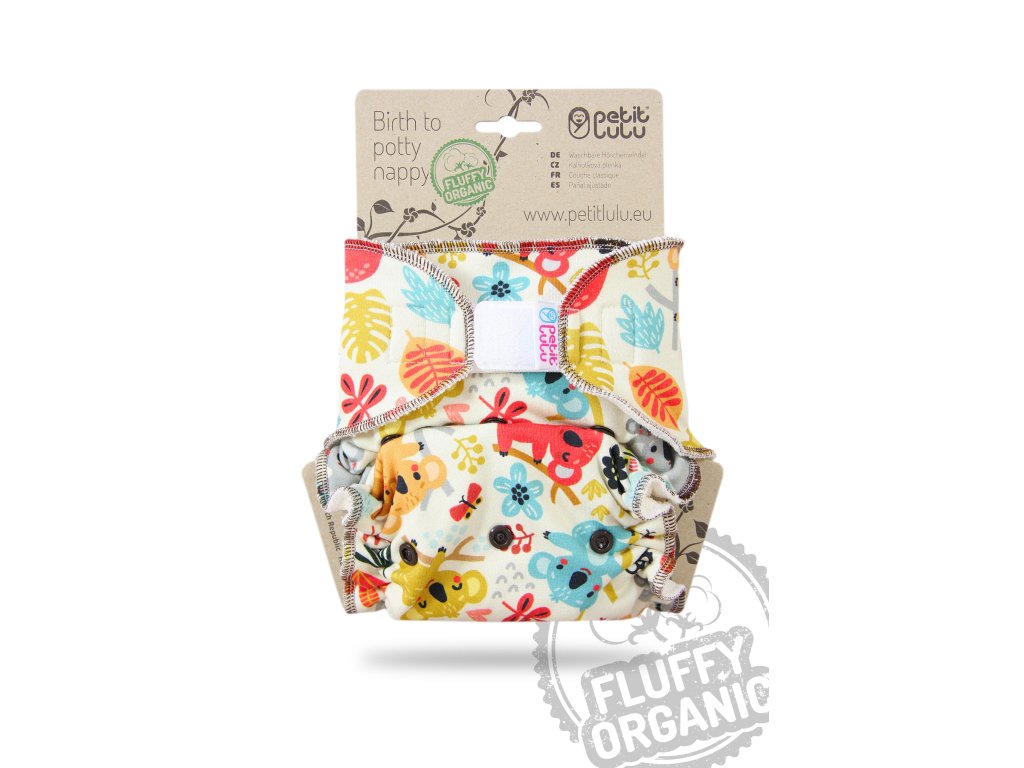 Přebalovací set Petit Lulu obsahuje kalhotkovou a vkládací látkovou plenu, v provedení Fluffy Organic využívající výjimečných přírodních vlastností. O roztomilý design se postará vzor s oblíbenými koalami.